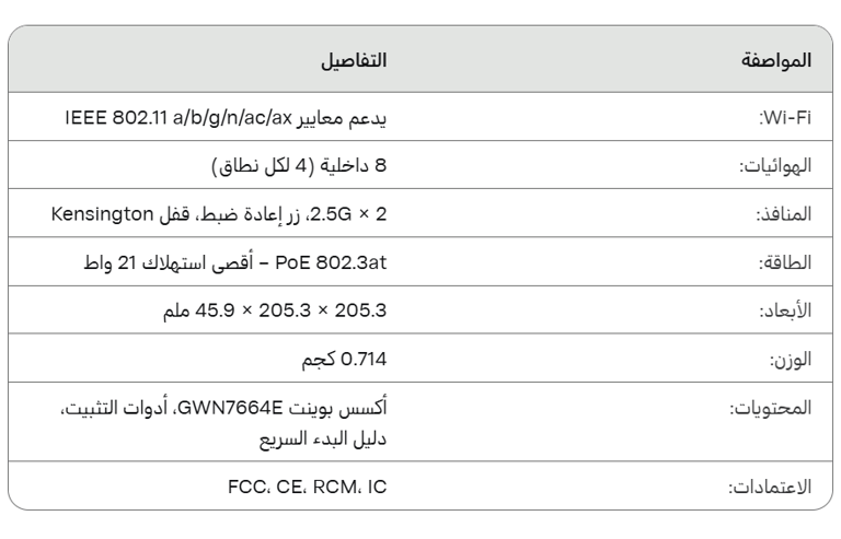 GWN7664E Wi-Fi 6 أكسس بوينت جراند ستريم